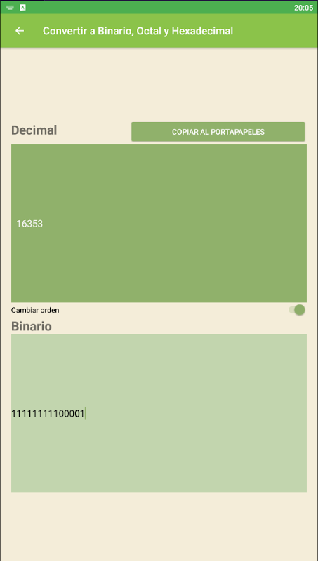 معلومات Convertir a Binario, Octal y Hexadecimal APK