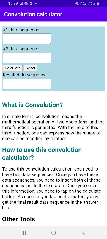 لاستخدام تطبيق حساب الالتفاف البسيط هذا ، ما عليك سوى إدخال قيمتين لمجموعة البيانات. أثناء إدخال قيم مجموعة البيانات ، تأكد من فصل كل رقم بمسافة بيضاء واحدة وتأكد من عدم ترك مسافة بيضاء في نهاية الأرقام. باستخدام هذه القاعدة البسيطة ، ستتمكن بسهولة من استخدام تطبيق حاسبة الالتفاف المبتكر هذا.