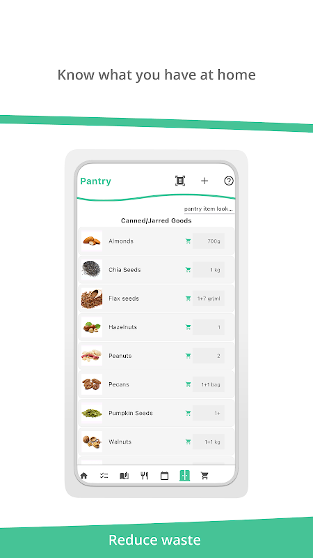 8. مخزن المؤن - تحكم في مخزن المؤن الخاص بك من خلال نظامنا سهل الاستخدام. بفضل ميزة مسح الباركود لدينا، أصبح تتبع ما لديك أسهل من أي وقت مضى. بالإضافة إلى ذلك، مع القدرة على مشاركة مخزون المؤن الخاص بك مع عائلتك بأكملها، يمكن للجميع البقاء على اطلاع!
