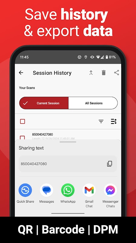 قارئ باركود QR مع خاصية التصدير - استمتع بدقة وسرعة الماسح الضوئي غير الواقعيتين على الهاتف المحمول
