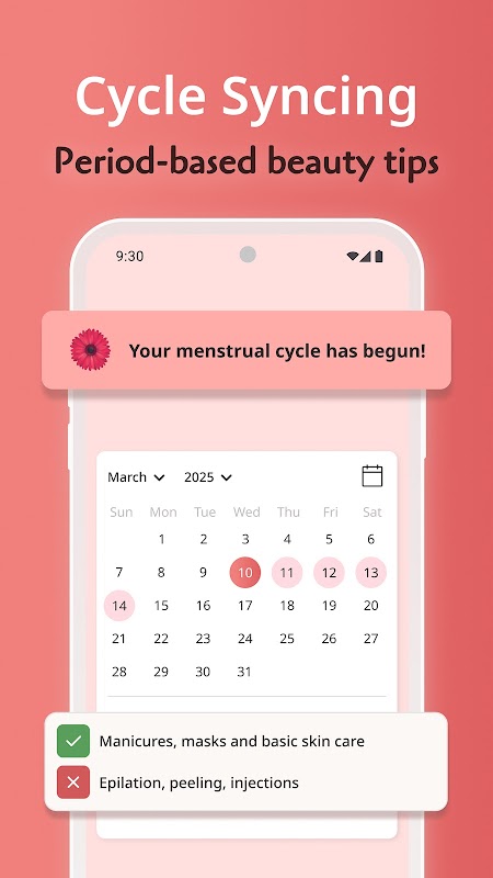 CosmoHub هو تطبيق لمزامنة الدورة الشهرية. هذا يعني أنه يتتبع دورتكِ الشهرية، ويمنحكِ أفضل توصيات التجميل بناءً على أيام معينة من دورتكِ الشهرية. مع أن بعض العلاجات تُعطي نتائج جيدة خلال مرحلة التبويض، إلا أنها قد تُسبب إزعاجًا وحتى آثارًا جانبية غير مرغوب فيها خلال المرحلة الأصفرية من الدورة الشهرية. تعرّفي على جسمكِ، وافهميه، ومارسي روتينات العناية الذاتية وحب الذات مع CosmoHub.