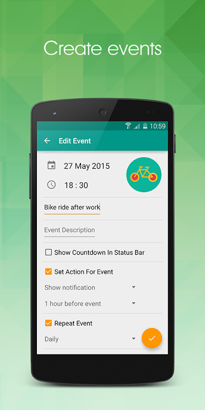 مع هدا التطبيق لن تنسى الاحداث المهمة ابدا في حياتك. يمكنك تعقب ومعرفة اوقات الاحداث المهمة بمساعدة العديد من اللخاصيات التي يحتويها هدا التطبيق.