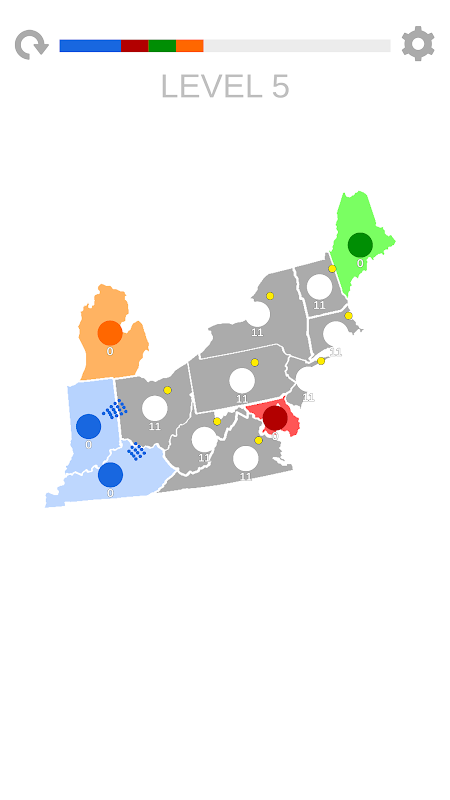 تحت سيطرتك الحكيمة بإحدى الولايات الأمريكية ، لكي تفوز تحتاج إلى تحرير جميع الولايات من الخصوم. في بداية المستوى عليك مهاجمة الدول غير المحتلة وتجميع القوات وإرسالها إلى الدول التي لم يتم تحريرها بعد. إذا كان لدى العدو جيش كبير جدًا في دولة واحدة مقارنة بأي من ولاياتك ، يمكنك تحديد عدة ولايات تحت سيطرتك وتوجيه ضربة ساحقة للعدو.
