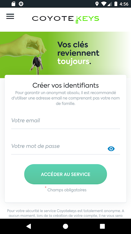 1 - Créez votre compte anonyme sur www.coyotekeys.com