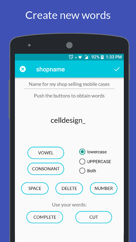 الكلمات العشوائية: للحصول على كلمات جديدة من كلمات أخرى أو أحرف عشوائية.