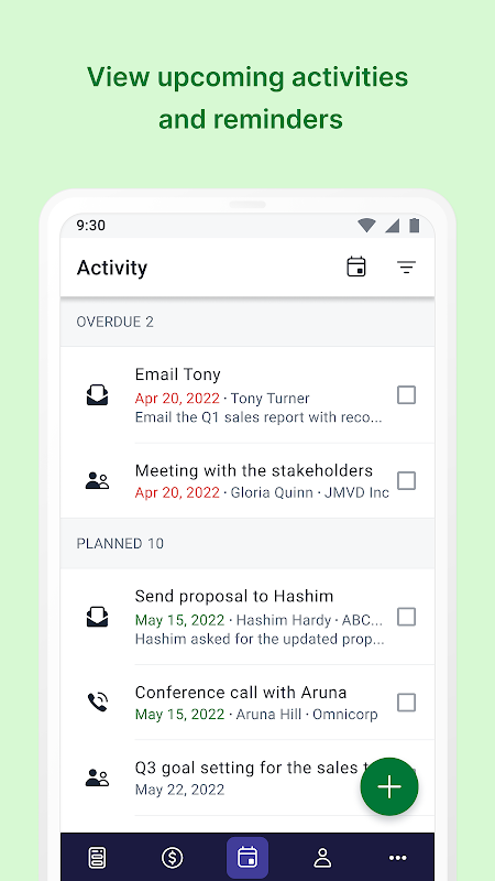 باستخدام Pipedrive لنظام Android، يمكنك الوصول إلى جهات الاتصال الخاصة بك وسجل الصفقات والمهام وإنشاء المهام وتدوين ملاحظات الاجتماع أينما كنت - تتم مزامنة جميع التغييرات على الفور مع تطبيق الويب Pipedrive.