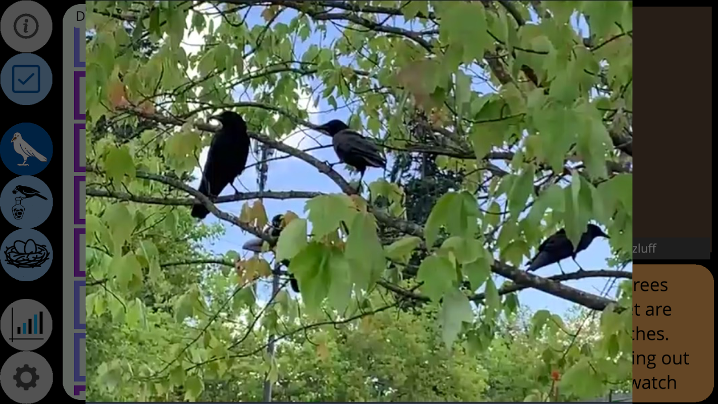 يقوم "Crow Scientist" بتدريب الطلاب الصغار على الخروج إلى العالم الحقيقي ومراقبة الغربان بالطريقة التي يقوم بها العالم. في هذا التطبيق المجاني ، يشارك علماء الغراب الواقعيون كولين وجون مارزلوف معرفتهم ، وأرشيفات الصور الخاصة بهم ، وحبهم للغربان. يتعلم الطلاب الصغار عن سلوك الغراب وكيفية فهم الغربان التي يلاحظونها. يتتبع التطبيق الملاحظات التي أجراها العالم الشاب - حسب اليوم والسنة ومدى الحياة. معظم الملاحظات هي سلوكيات ، مثل "البحث عن الطعام" وبعضها عبارة عن نداءات. يتضمن التطبيق صورًا لسلوكيات وتسجيلات صوتية لمكالمات الغراب لمساعدة العالم الشاب على التعرف عليها. فحص جميع العناصر الثمانية عشر يكسب العالم الشاب شهادة للمشاركة أو طباعتها.