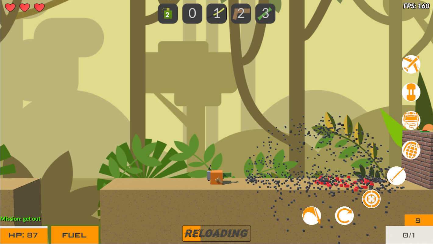 اعثر على طريقة للهروب من الغابة المليئة بالأعداء! تغلب على هؤلاء الأوغاد المكعبين باستخدام العديد من الأسلحة والقنابل اليدوية المتاحة مثل بندقية القنص أو القنبلة الدافعة القوية. عليك أن تجد مخرجًا في 18 مستوى وتنجو من 30 موجة في وضع البقاء على قيد الحياة. حظا سعيدا!