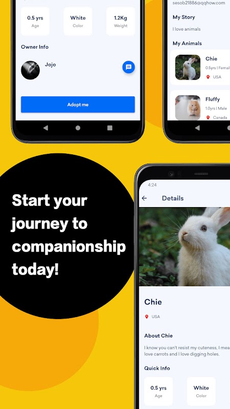 مرحبًا بك في Cuddle Buddy ، الأداة المثلى لتبني الحيوانات الأليفة والرفقة المحببة. إذا كنت تبحث عن صديق فروي لتحاضنه وتملأ أيامك بالدفء والحب ، فلا تبحث عن المزيد. Cuddle Buddy هنا لتحقيق أحلامك في الحضن والرفقة.