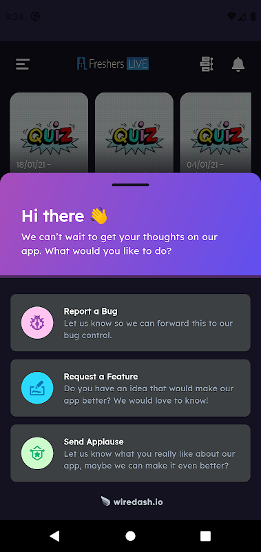 FreshersLive غير تابع لأية مؤسسات حكومية. نقوم بجمع معلومات الوظائف الحكومية من مختلف المصادر القانونية والموثوقة. الهدف الرئيسي لتطبيقنا هو توفير اختبار ومعلومات عن الشؤون الجارية للباحثين عن عمل بطريقة سهلة من خلال هذا التطبيق.