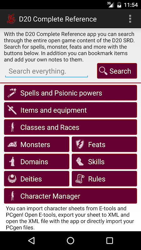 معلومات D20 Complete Reference APK