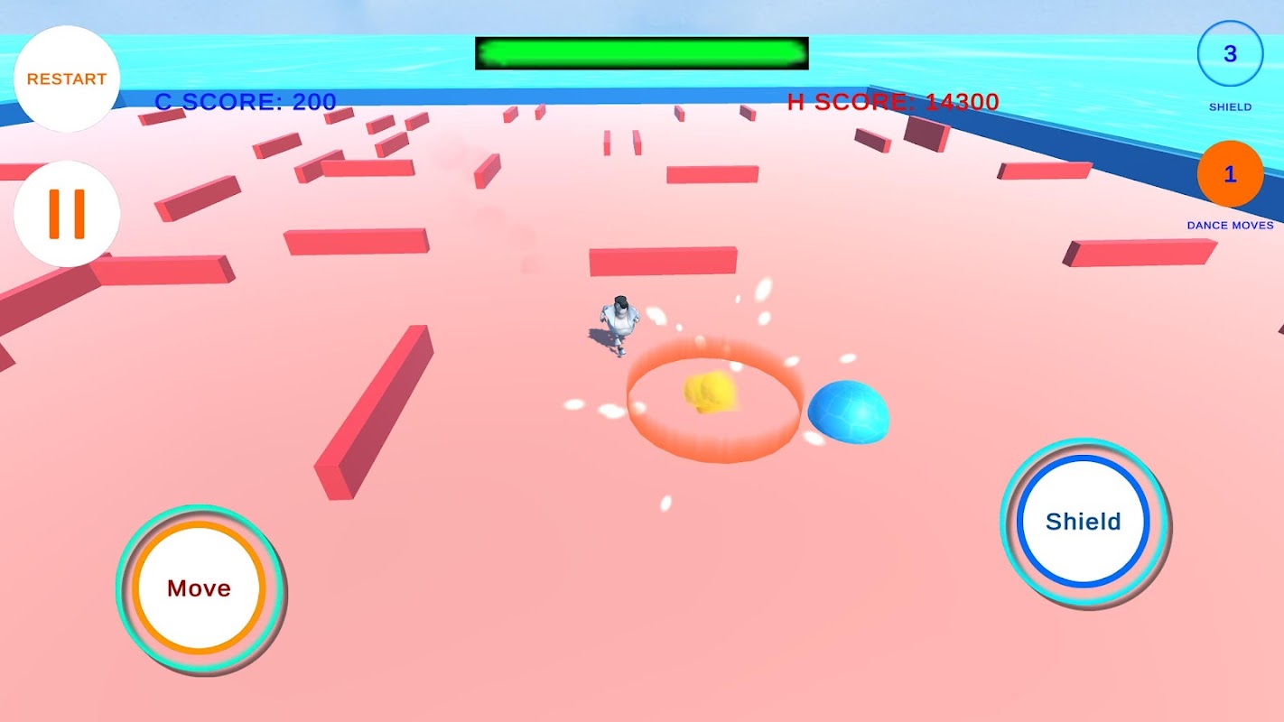 DanceFloor Race هي لعبة متاهة حيث يتعين على اللاعب تجنب التعرض للضرب بواسطة القضبان المنزلقة أثناء محاولته جمع حركات الرقص من الشخصيات الراقصة على الأرض. الحماية الوحيدة للاعب من القضبان المنزلقة هي الدروع التي يمكن للاعب جمعها عن طريق الاصطدام بالكرات الزرقاء الموضوعة بشكل عشوائي أو باستخدام الدروع الافتراضية الثلاثة التي يمتلكها من خلال زر الدرع. عند تفعيل الدرع، يمكن اللاعب من تجميع النقاط عندما يتم تدمير الشريط بواسطة الدرع. يقوم اللاعب أيضًا بتجميع النقاط عندما يجمع حركات الرقص من الشخصيات الراقصة. يتم بعد ذلك إضافة النقاط إلى اللاعب عندما يدخل إلى حلبة الرقص المحددة، حيث يتم ضرب عدد حركات الرقص التي تم جمعها بعدد النقاط المتراكمة.
