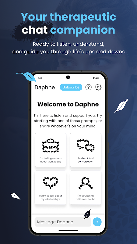 Daphne هو تطبيق دردشة علاجي مدعوم بالذكاء الاصطناعي، وتم إنشاؤه بواسطة مستشارين محترفين.