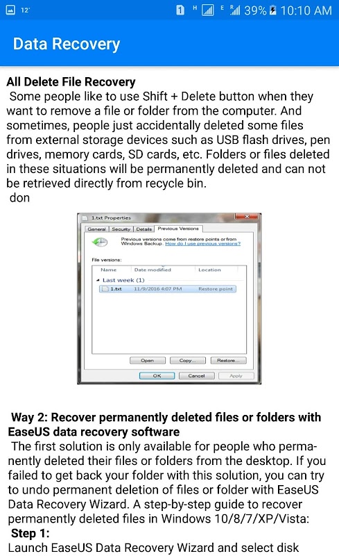 الإصدارات القديمة لـ Data Recovery Guide : New 2019