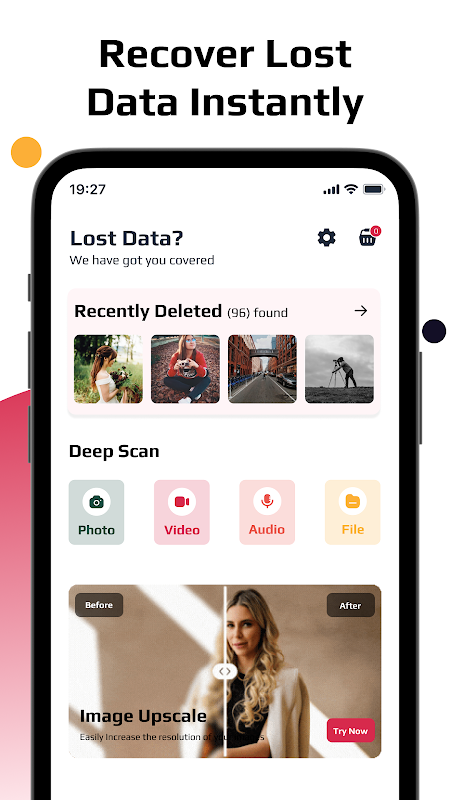 يمكنك استعادة الصور ومقاطع الفيديو والصوت والمستندات القديمة أو المفقودة أو المحذوفة عن طريق الخطأ من هاتفك في ثوانٍ معدودة.