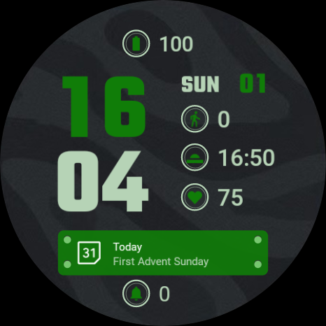 تحتوي على 6 وجوه ساعة معقدة قابلة للتكوين لساعة Wear OS. احصل على البيانات التي تحتاجها على وجه الساعة. وجه الساعة قابل للتكوين بدرجة عالية.