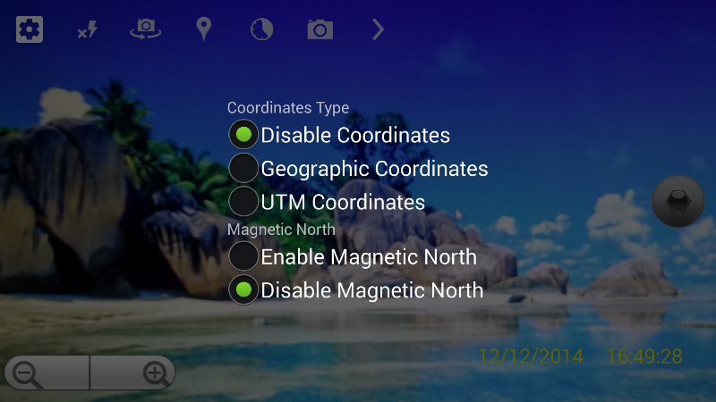 التقاط الصور الخاصة بك مع التواريخ، والوقت الحالي والإحداثيات الجغرافية أو UTM.