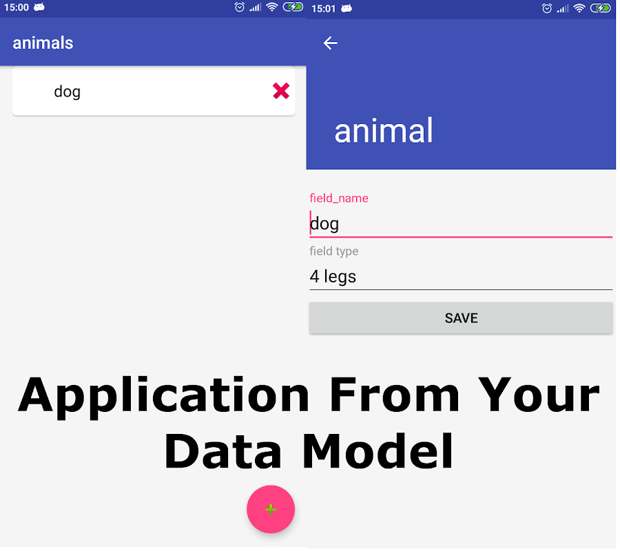 DB App Generator is an application, a tool for creating other database applications that allows you to create your own data models and structure without any programming on your side. The things that the application needs is the model definition, structure, fields.