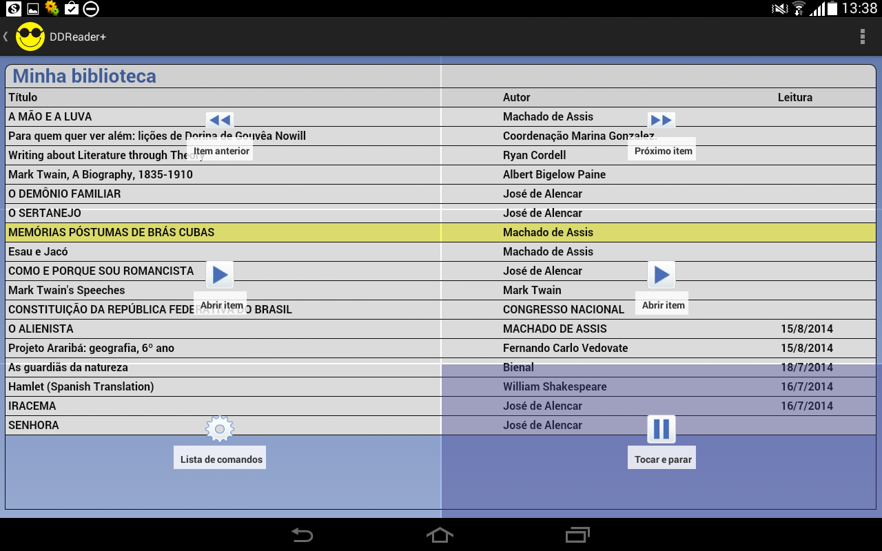 DDReader was developed by Pedro Milliet and Eduardo Perez (Results Ltd.) in partnership with Dorina Nowill Foundation for the Blind. DDReader is an open source application. If desired, request the code by support email.