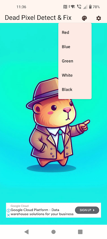 كيف تكتشف البيكسلات الميتة؟اضغط على لوحة الألوان في الزاوية العلوية اليمنى لاختيار لون خلفية بملء الشاشة.