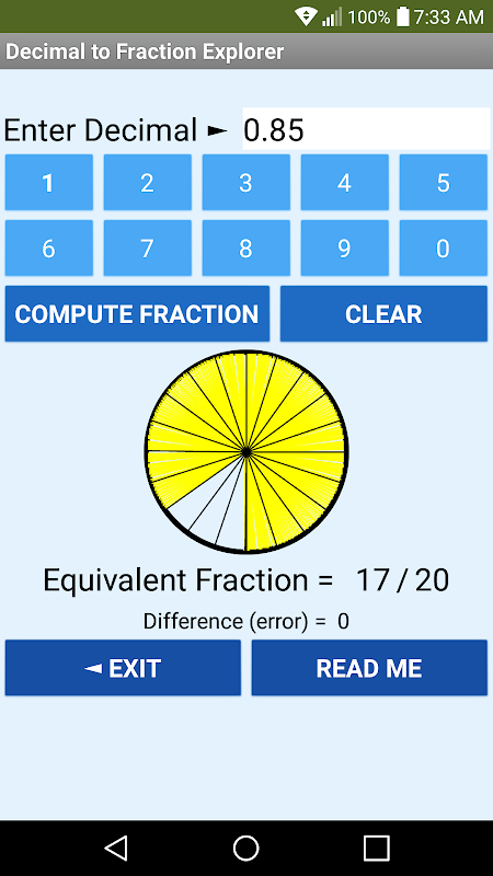 To use Decimal to Fraction Explorer, just enter the decimal you want to convert, then press “Compute Fraction.”