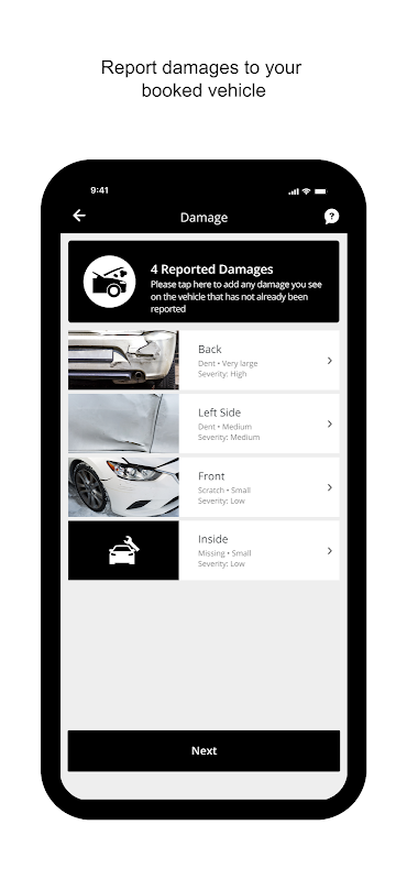 - قبل/بعد الحجز، يمكنك الإبلاغ عن نظافة السيارة والأضرار التي لحقت بها