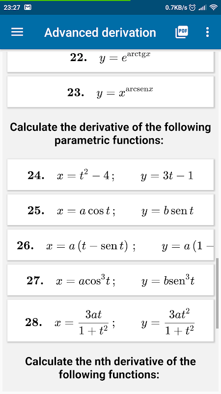 يتم تضمين صيغ اشتقاق من أهم ، مثلثية ، لوغاريتمي ، الأسي ، وما إلى ذلك ، وظائفهم العكسية ، بطريقة بسيطة ومركبة. إذا كنت تعتقد أن أي وظيفة مهمة مفقودة ، فأخبرنا بذلك.