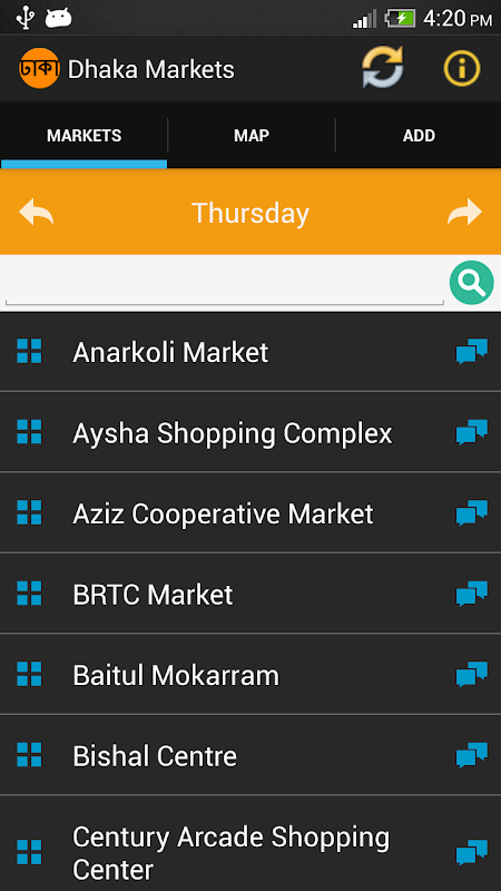 Find the list of markets in Dhaka city which are closed in a particular day of the week. Just travel a day of the week, this amazing app will show you the list of markets and shopping centers those are closed on that day. This app will also give you the addresses of the market and its location in the map.