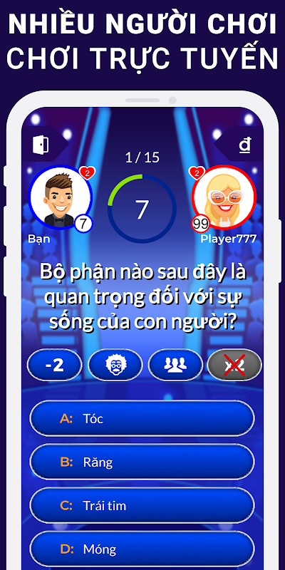 - Khi chơi bạn sẽ trải nghiệm cảm giác hồi hộp và kịch tính trong từng giây, từng phút trong từng câu hỏi với âm nhạc thực sự sống động.