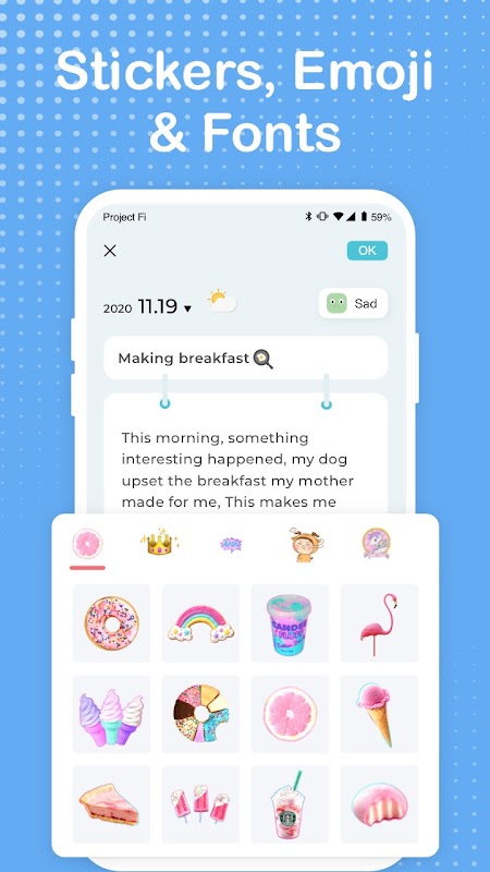 Use different styles of themes, fonts, and stickers to create a unique personal diary. More interesting stickers, emoticons, fonts, constantly updating.