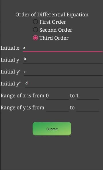 You no longer need to use matlab to solve ODE of initial condition type. Use this app to solve ODEs up to third order (or more in future updates) numerically.