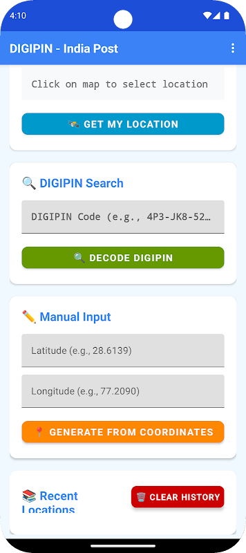 🚫إخلاء مسؤولية: هذا التطبيق غير تابع لبريد الهند أو حكومة الهند أو أي جهة حكومية، ولا معتمد منها. إنه أداة مستقلة صُممت لمساعدة المستخدمين على استكشاف مراجع الموقع الرقمي استنادًا إلى المعلومات الجغرافية المكانية العامة.