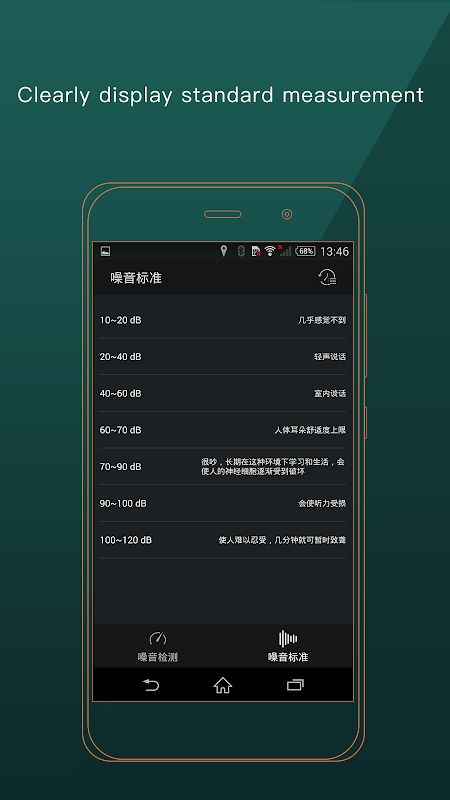 هذا التطبيق يمكن قياس ديسيبل من الضوضاء البيئية (ديسيبل) وتظهر إشارة.