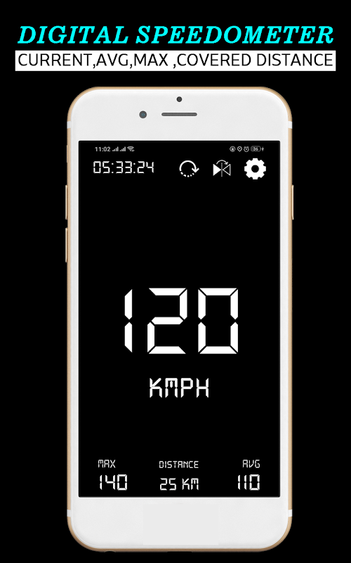 يمكن عرض السرعة في طرق عرض عداد السرعة المختلفة مثل السرعة الحالية مع شاشة خيارات التفاصيل ، السرعة الحالية بملء الشاشة فقط وهي مفيدة جدًا أثناء القيادة