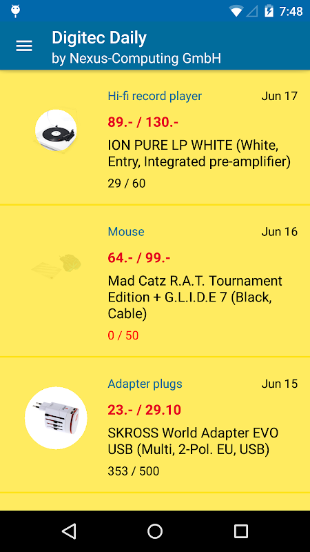 Nie mehr ein Spezialangebot von Digitec verpassen. Via Option wird das jeweilige Angebot des Tages per Android Notification angezeigt.