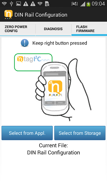 يستخدم هذا التطبيق لاظهار 3 حالات الاستخدام الصناعي للNFC على إعداد عرض ( "العرض DIN السكك الحديدية") من خلال NXP: