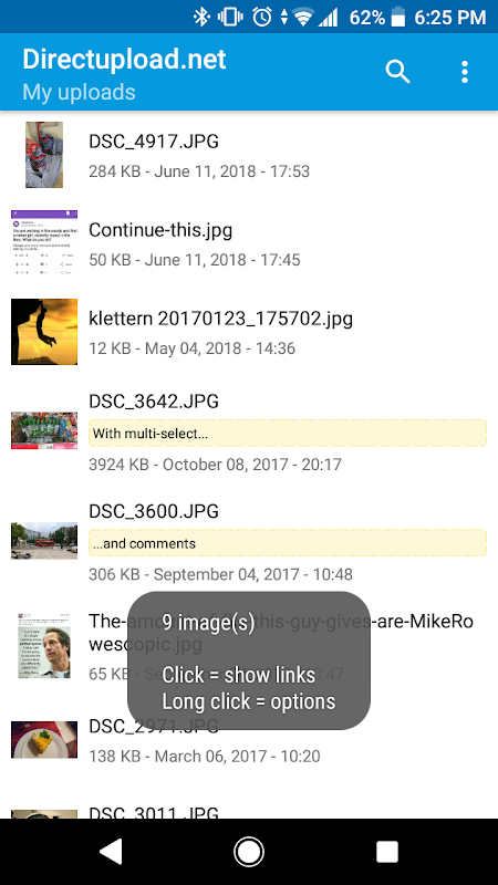 directupload.net لا تقدم الارتباط حذف الملفات المرفوعه للمجهول، لذلك إذا قمت بحذف صورة من تاريخ التطبيق، لا يتم حذفه عبر الإنترنت. إذا قمت بتحميل إلى حساب المسجل، يمكنك إدارة وحذف الصور الخاصة بك عبر الموقع الإلكتروني.