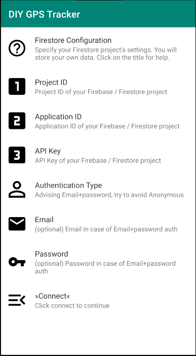هذا مشروع مجاني مفتوح المصدر. يُرجى إرسال أي مشكلة على https://github.com/DIYGPSTracker/DIYGPSTracker/issues. كجزء من مجموعة التطبيقات ، يسمح هذا التطبيق بالإبلاغ عن موقع الأصول التي من المفترض إدارتها باستخدام التطبيق المصاحب DIYGPSManager. تحقق من موقع التطبيق لمزيد من المعلومات. فلسفة التطبيق هي Do-It-Youself: قد تحتاج إلى بعض الخبرة التقنية ، ولكن جميع البيانات المسجلة تحكمها وتديرها. لا يسجل التطبيق البيانات في قواعد بيانات أخرى بخلاف Firestore الخاص بك.