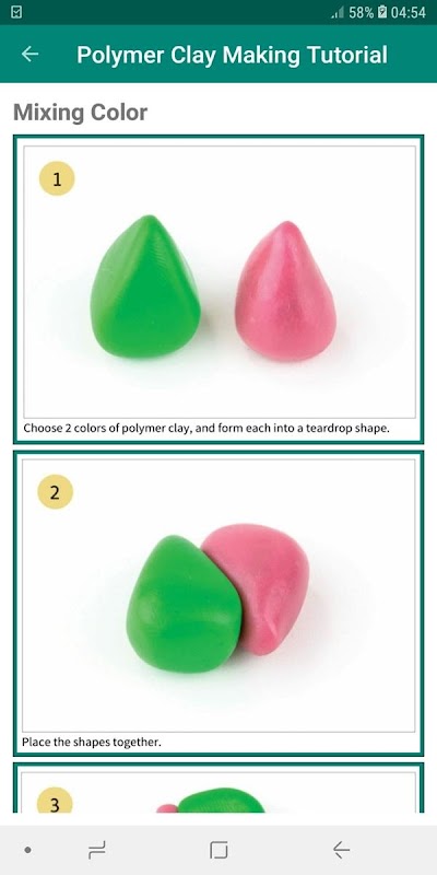 أكمل تعليمات DIY Polymer Clay خطوة بخطوة المتوفرة في هذا التطبيق: