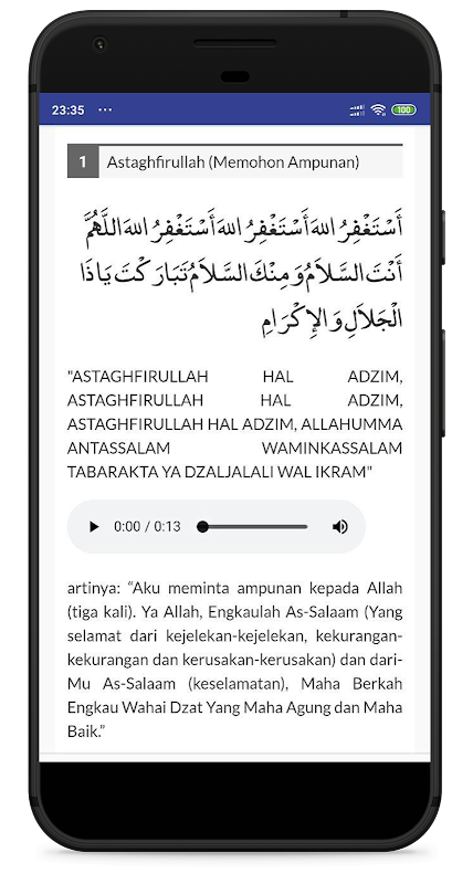 بسم الله. يحتوي هذا التطبيق على الصلاة والذكر بعد الصلاة مصحوبة بإرشادات أساسية من سنة الرسول صلى الله عليه وسلم مجهزة باللغات العربية واللاتينية والمعاني المترجمة إلى الإندونيسية.