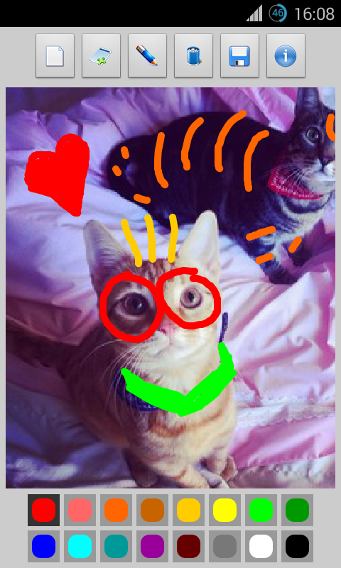 This app also allows you to open and load files from your image gallery or even straight from your photo camera in order to edit them with the board to create funny and original images. After that they can be saved in your device.