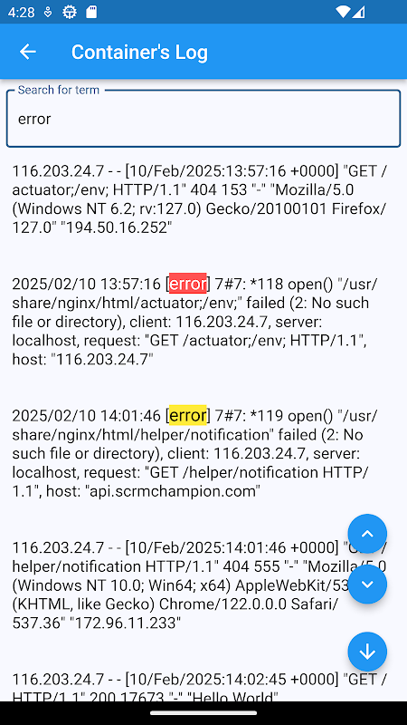 - عرض سجلات الحاويات (في الوقت الفعلي)