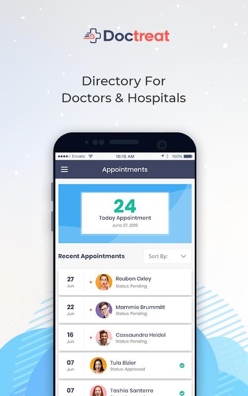 Doctreat هو الحل الرعاية الصحية عبر الإنترنت للمرضى. يتم إنشاء هذا التطبيق مع فكرة لمعالجة القضايا الطبية والصحية ذات الصلة التي نشرها المرضى والأطباء