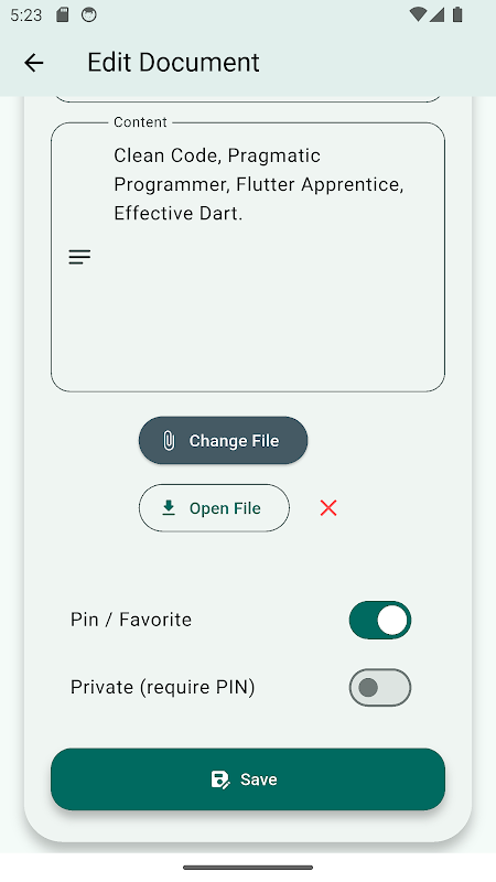 • الخصوصية: قفل رقم التعريف الشخصي للتطبيق. وضع علامة على المستندات على أنها خاصة (يتطلب رقم التعريف الشخصي)