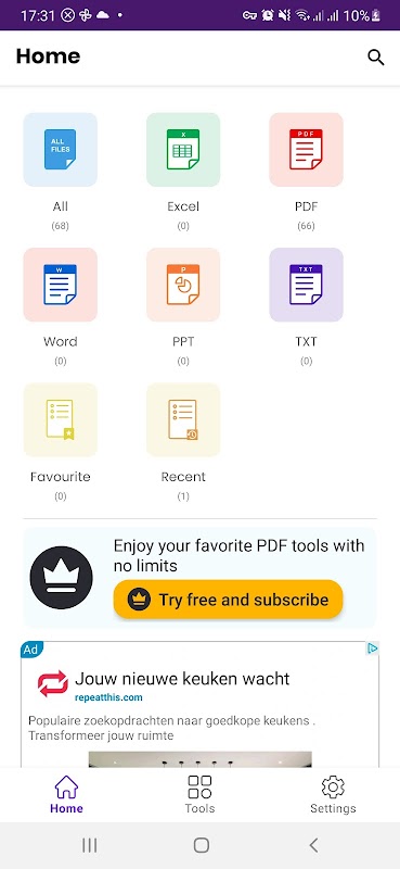 قارئ المستندات ومحرر ملفات PDF وDOCX وPPTX وXLSX مع أدوات PDF المدمجة.