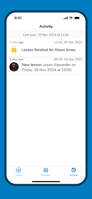 يمكن لمدربي القيادة عرض جدولهم الزمني وإدارة طلابهم وتحديث تقدم الطلاب في القيادة من خلال مراجعة المهارات والملاحظات المشتركة، بالإضافة إلى تلقي إشعارات بالأنشطة الرئيسية.