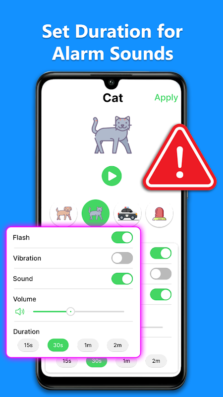 - ضبط الفلاش والاهتزاز للإنذار الأمني: بالإضافة إلى التنبيه الصوتي، يتيح لك تطبيق Protect My Phone تخصيص تنبيهات الفلاش والاهتزاز بمرونة. اضبط مستوى الصوت واضبط مدة صوت التنبيه وفقًا لتفضيلاتك.