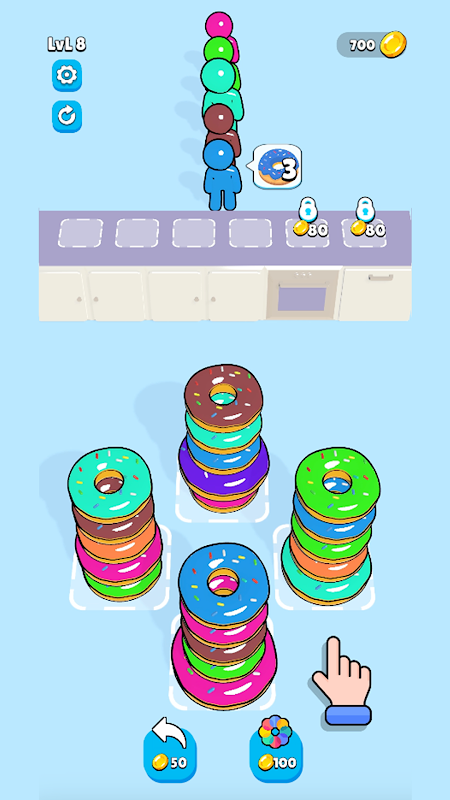 خدمة الكعك للعملاء من خلال مطابقة ألوانهم. تذهب الكعكات الخاطئة إلى المنضدة مع 6 فتحات - املأها، وتنتهي اللعبة. استمر في التقديم بشكل صحيح للفوز وتجنب ملء العداد!