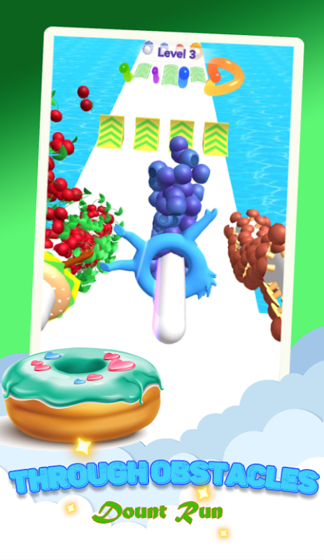 Players change into donuts in the game. They need to control the direction of the donuts, eat props as much as possible to make the donuts bigger, be careful not to encounter obstacles, and keep the first place to reach the finish line to win!