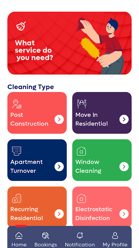 • احجز خدمات التنظيف السكنية أو التجارية في دقائق.